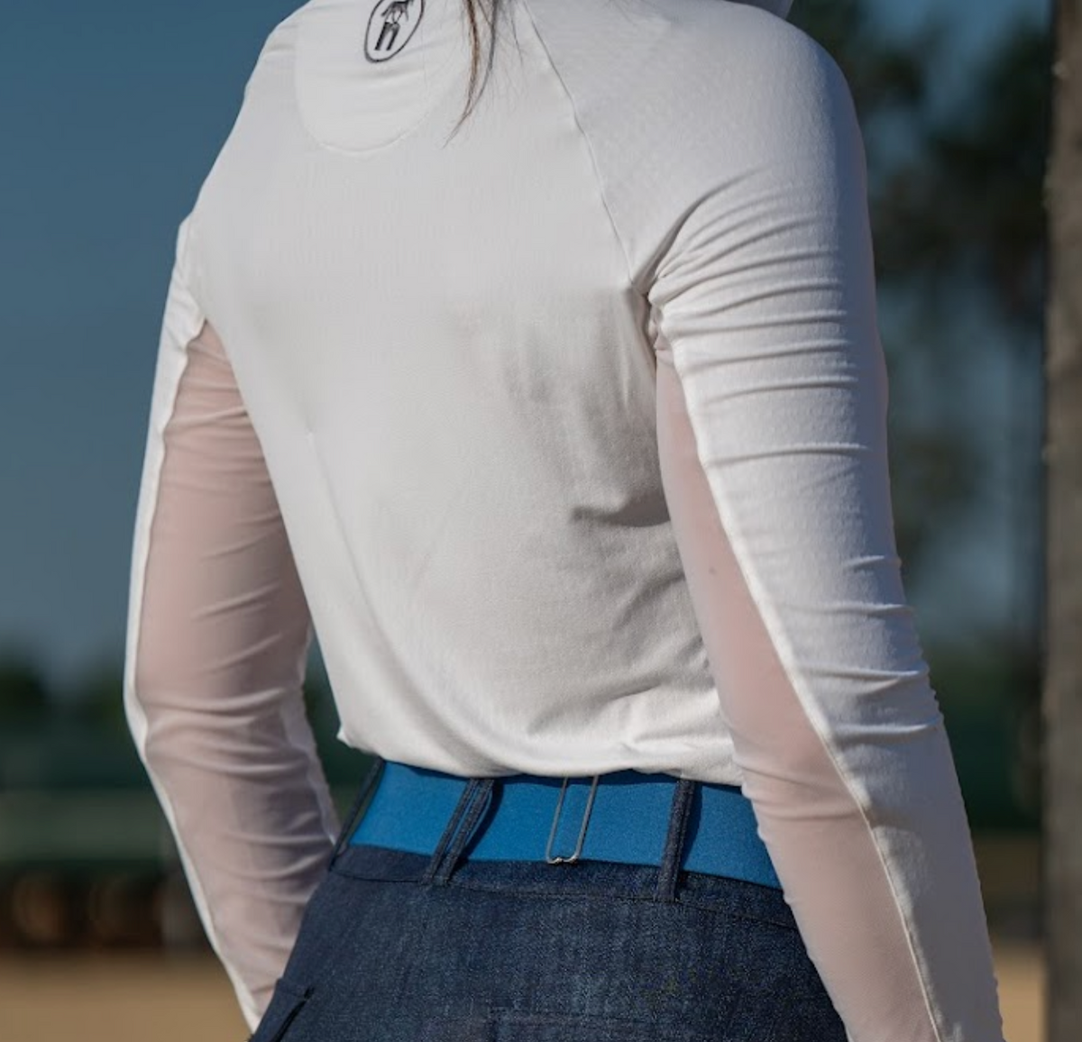 This shirt will be a staple in your closet and is perfect with breeches or jeans and could easily be worn as a show shirt and/or when coats are waived. True to size but adapts to your body’s changes, this sun-shirt gives you a perfect fit every time. UPF 30+ for added ultra-violet protection.